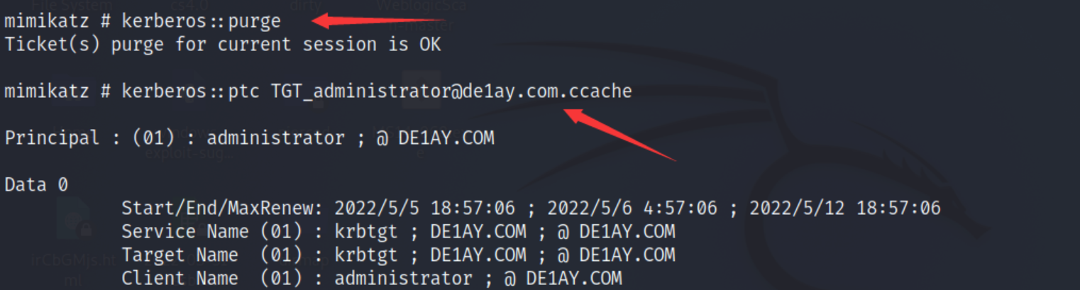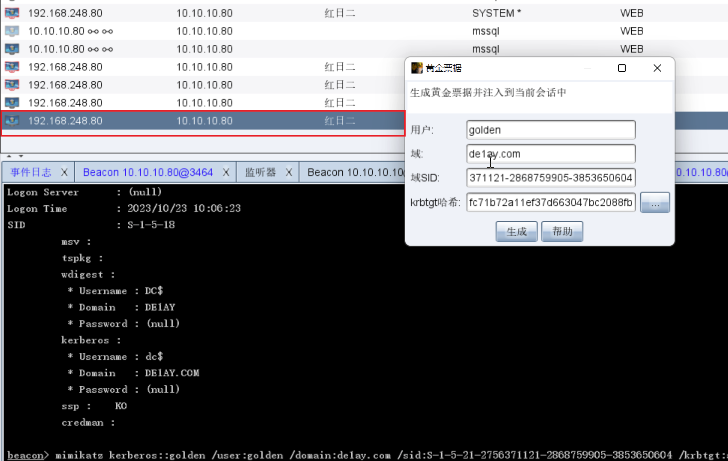 这个黄金票据成功给注入到这个PC机里头了,到时候可以根据这个账户直接拿到SYSTEM权限