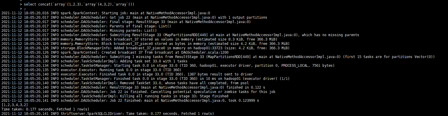 hive单中不能使用 concat连接array 因此这个方法只能在spark sql中使用!!!