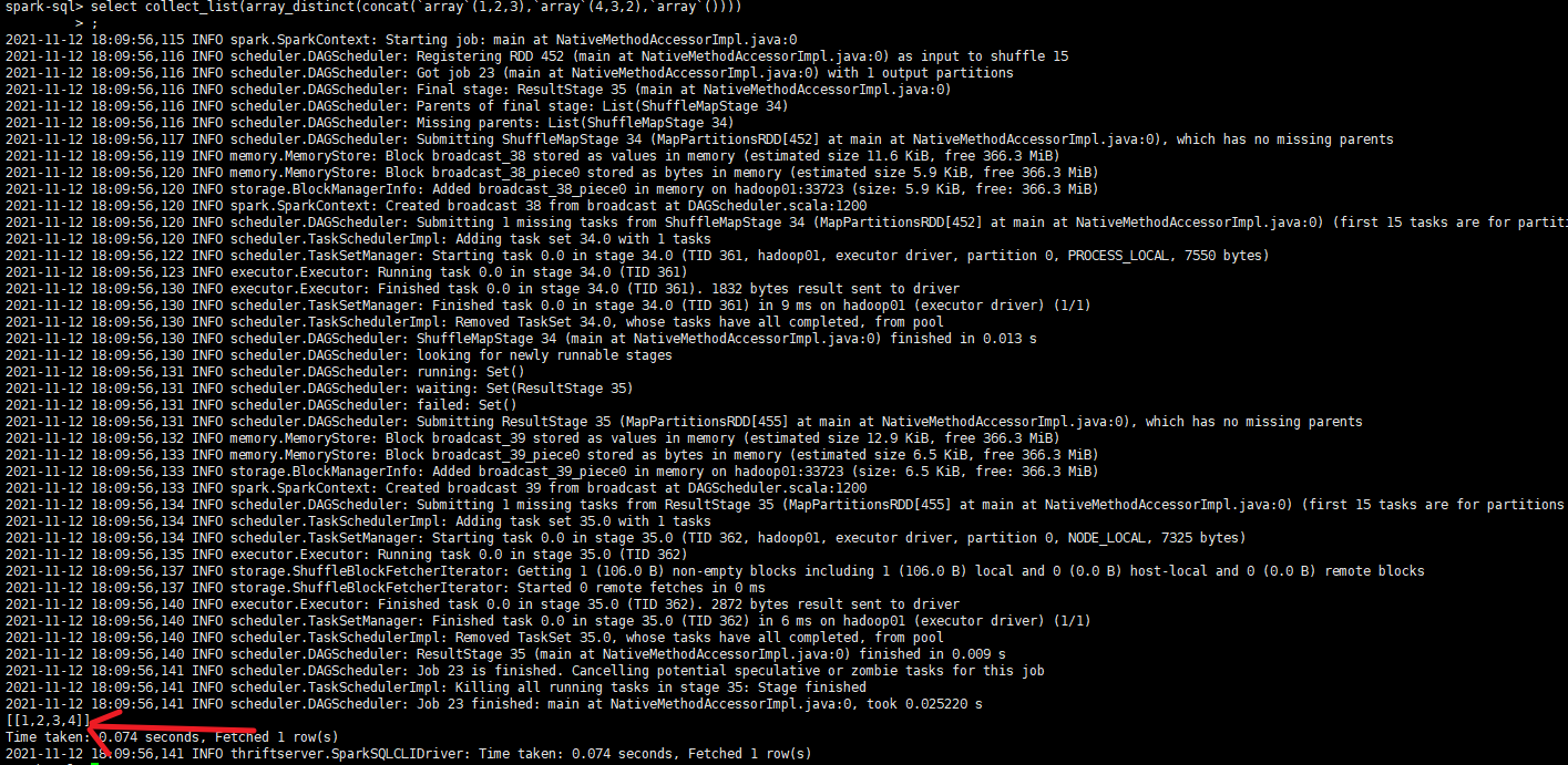 接下来就是去重,这个好办 spark sql有专门的函数array_distinct
