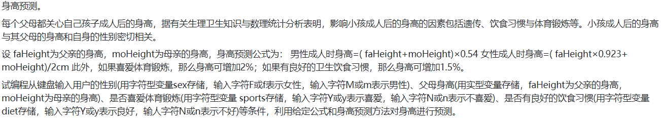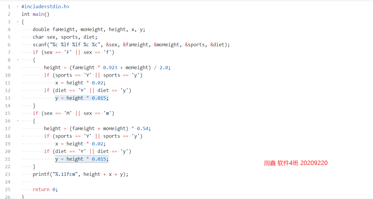 |数据处理:女生height = (faHeight * 0.923 + moHeight) / 2.0;男生height = (faHeight + moHeight) * 0.54;x = height * 0.02;y = height * 0.015;运用if分支语句|