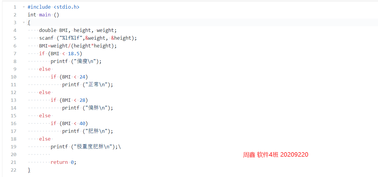 |数据处理:BMI=weight/(height*height);计算;if的多重分支结构|