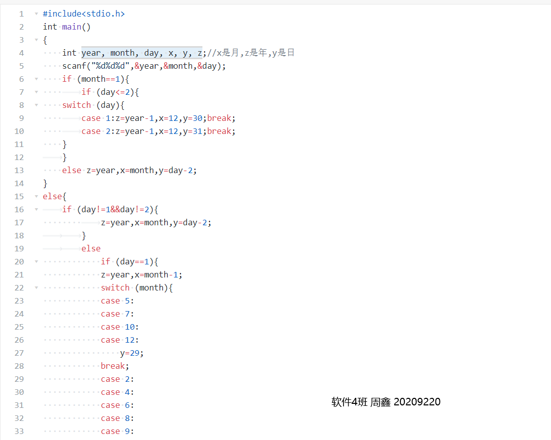 - 1.部分正确:语句太多了忽略了day大于2和一月的情况。