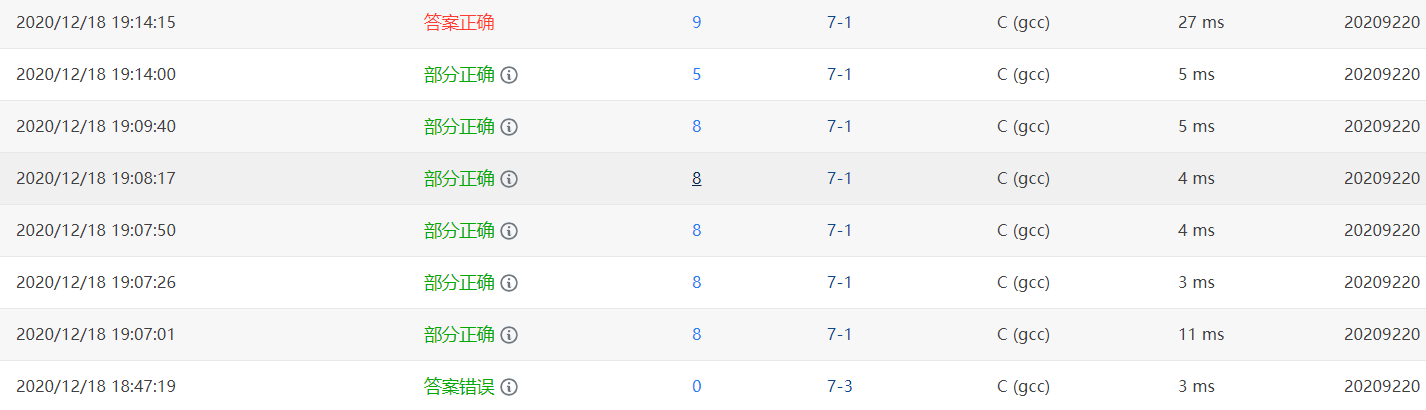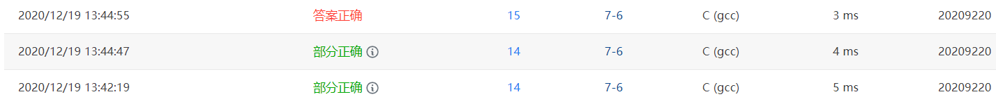 - 1.部分正确:for循环中写的i<n,导致少了一次循环,所以部分错误。