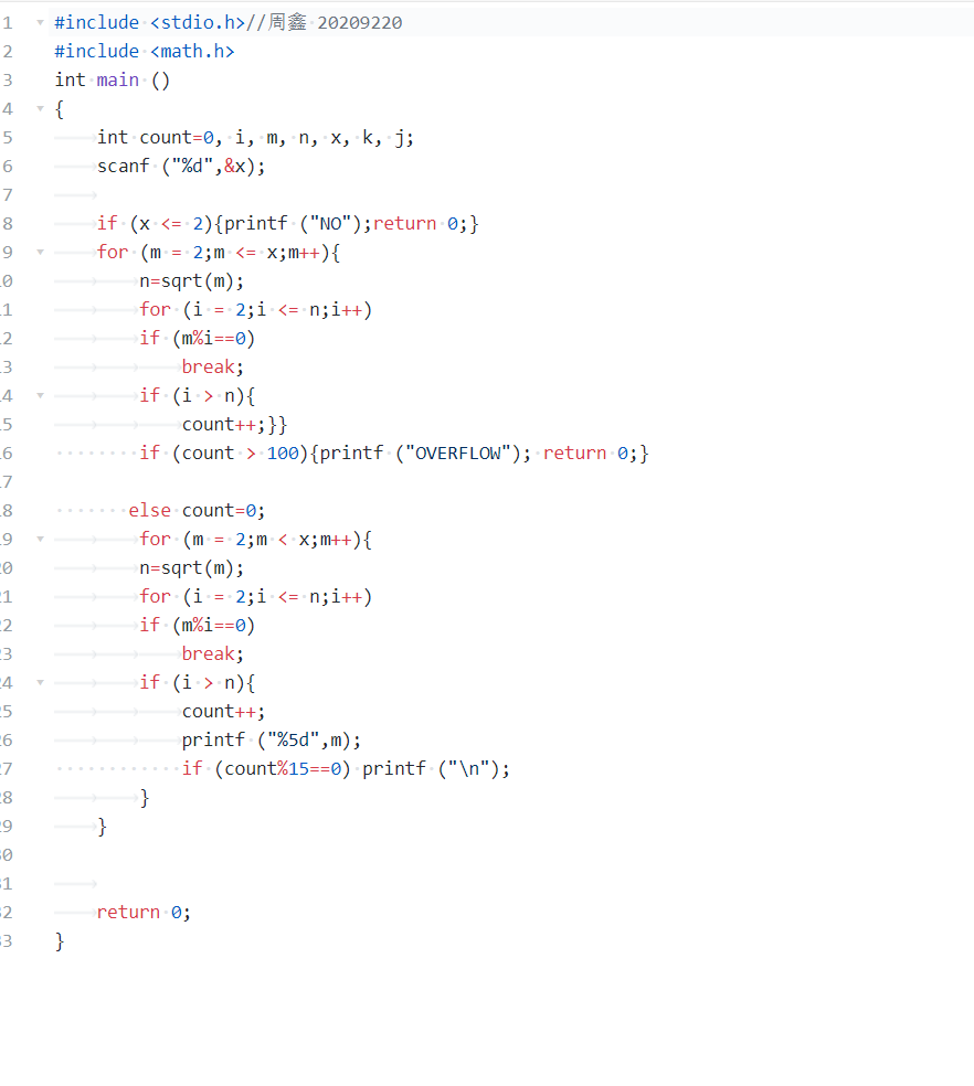 |数据表达:变量count, i, m, n, x, k, j整型,count记录质数个数|
