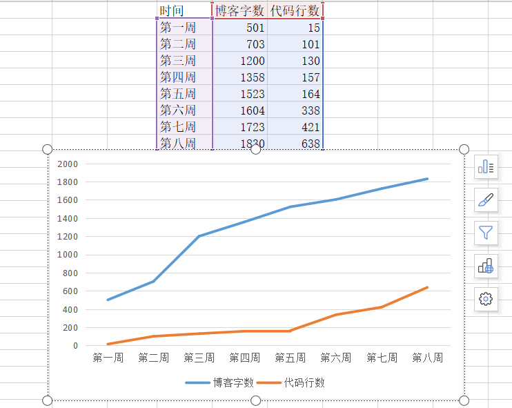 3.2 累积代码行和博客字数