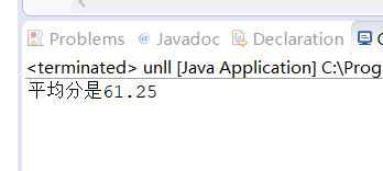1 package as; 2 3 public class unll { 4 public static void main(String[] args) { 5 // TODO Auto-generated method stub 6 7 int a[]={80,60,20,40,90,50,80,70,90,20}; 8 double q=0; 9 for(int i=0;i<10;i++){ 10 for(int j=0;j<10;j++){ 11 int temp=0; 12 if(a[i]>a[j]){ 13 temp=a[i]; 14 a[i]=a[j]; 15 a[j]=temp; 16 } 17 } 18 } 19 20 a[0]=0; 21 a[9]=0; 22 for(int x=0;x<10;x++){ 23 q=a[x]+q; 24 } 25 q=q/8; 26 System.out.println("平均分是"+q); 27 } 28 }