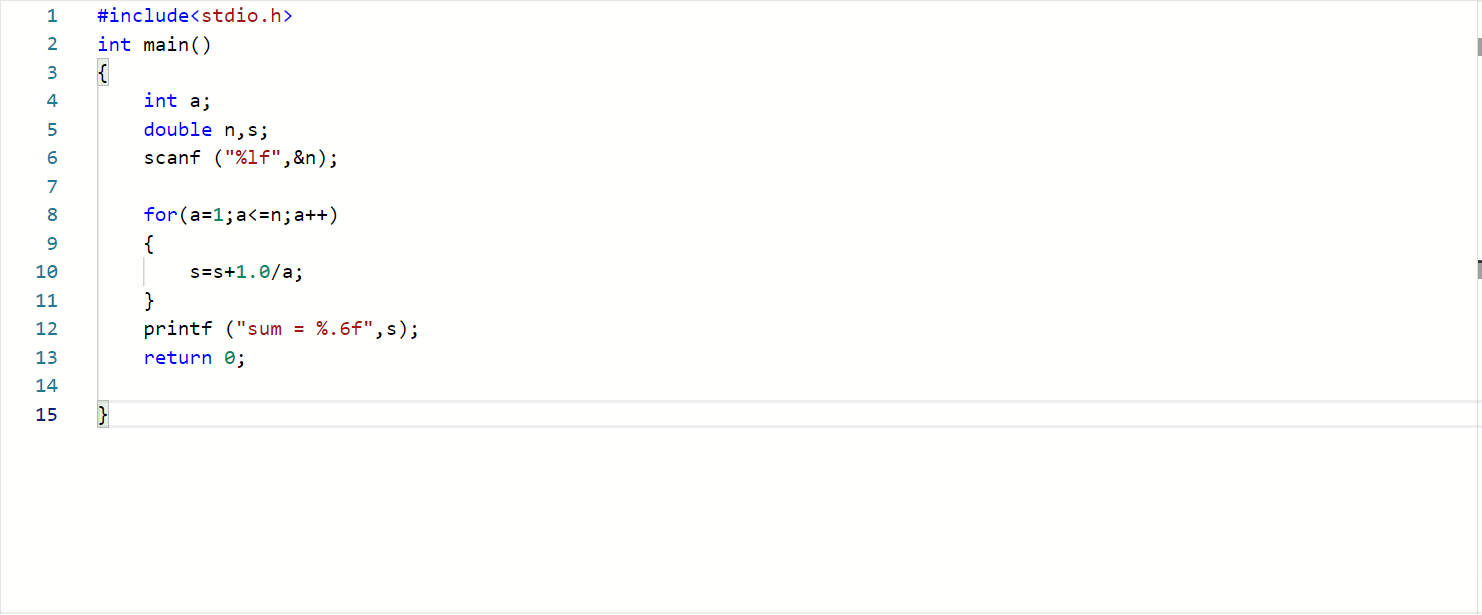 本题要求编写程序,计算序列 1 + 1/2 + 1/3 + ... 的前N项之和。