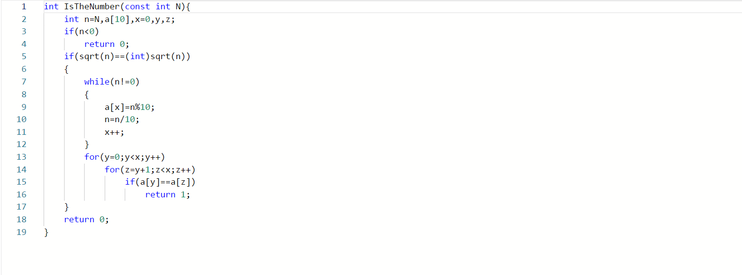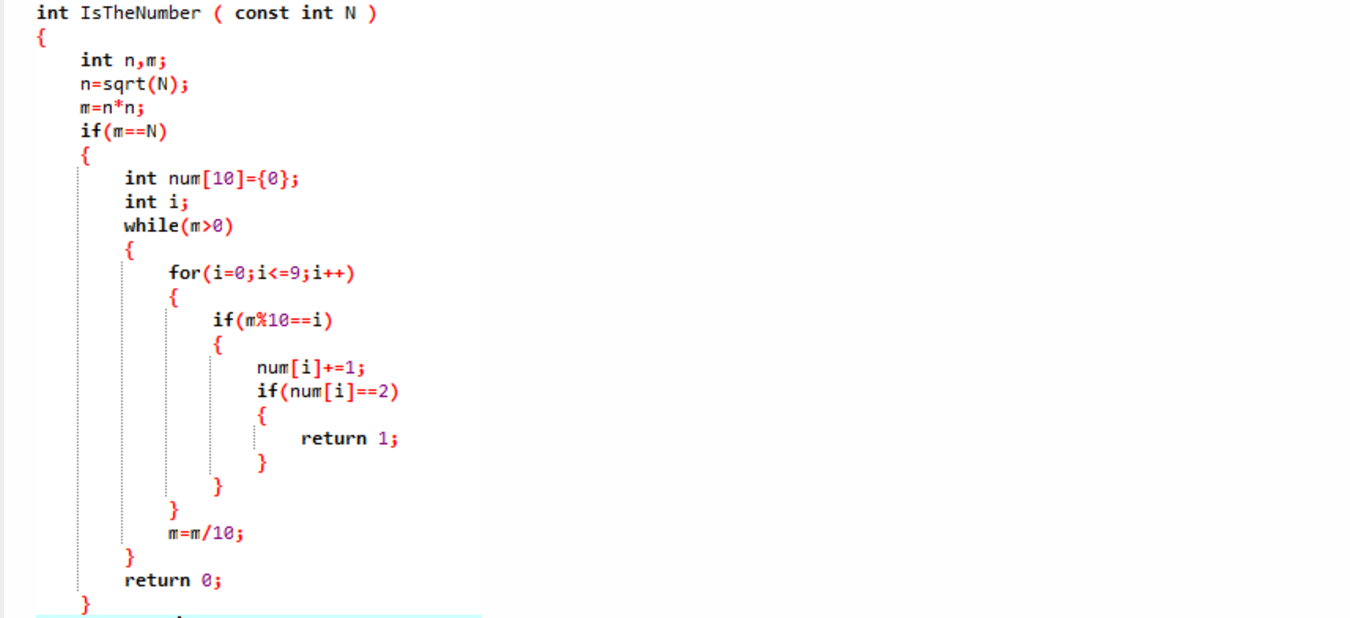 本题要求实现一个函数,判断任一给定整数N是否满足条件:它是完全平方数,又至少有两位数字相同,如144、676等。