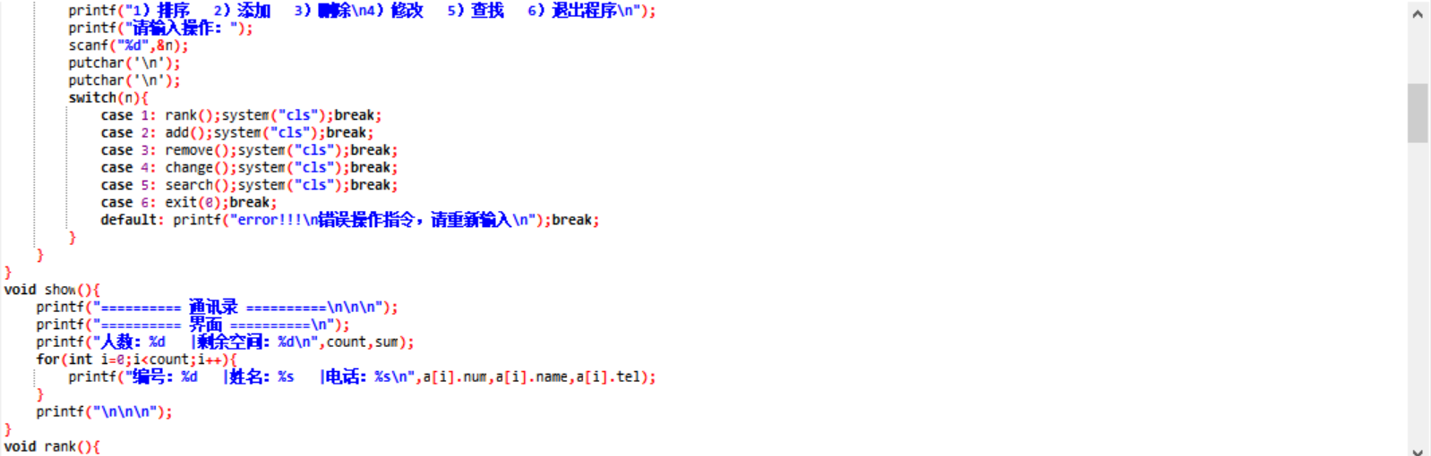 case 1: rank();system("cls");break;