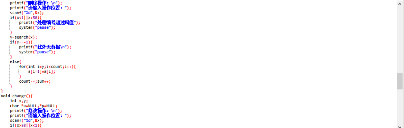 printf("已删除,请重新输入:\n");