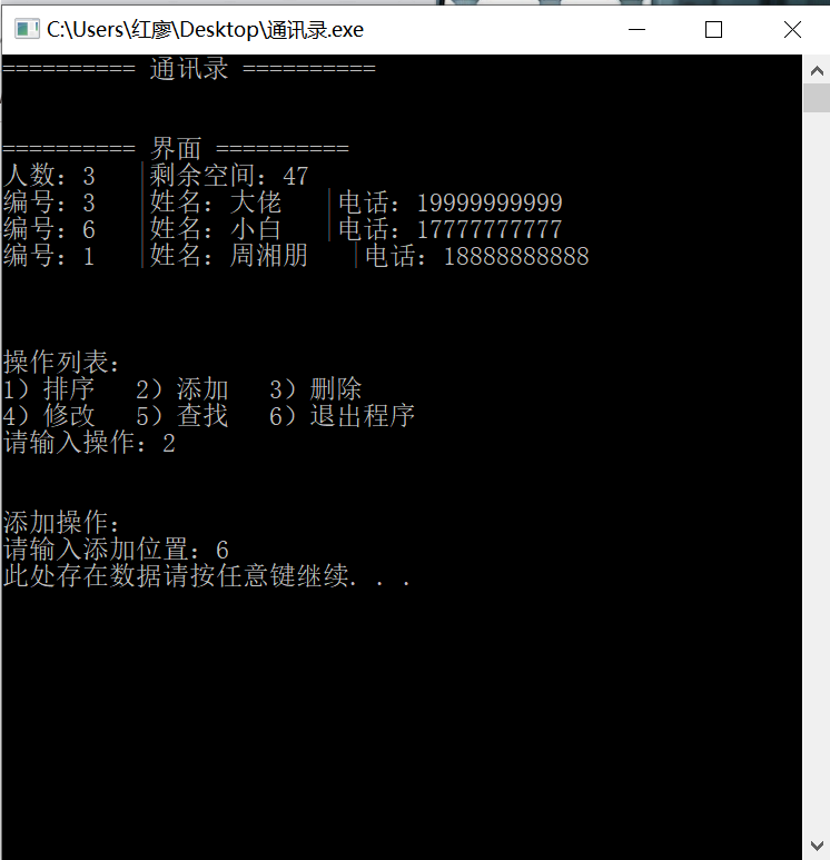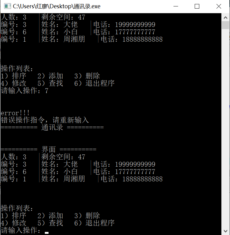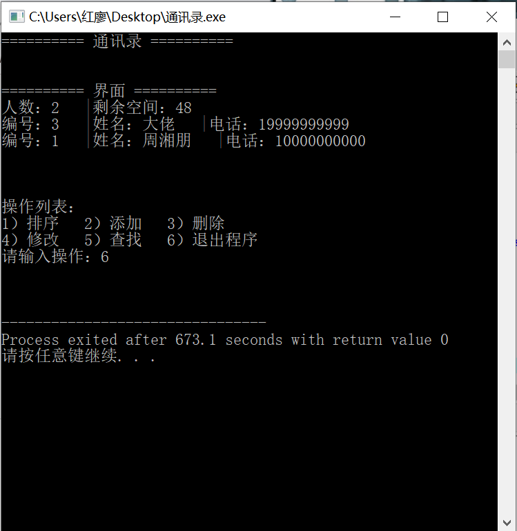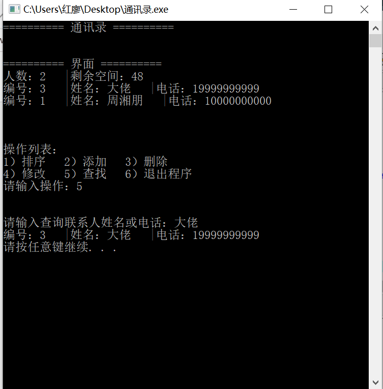 ·要求编写一个五十人的通讯录