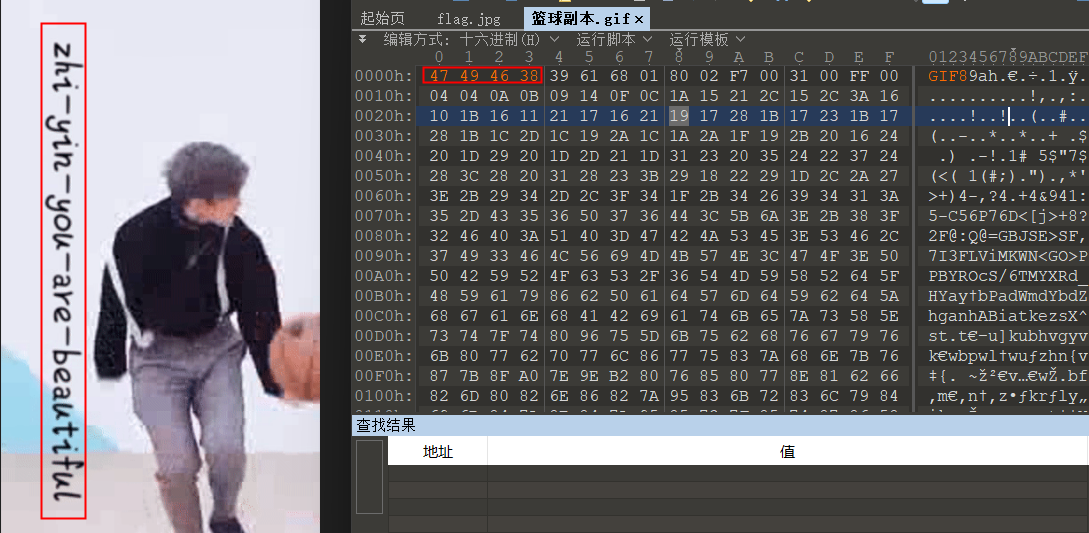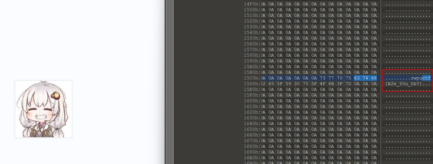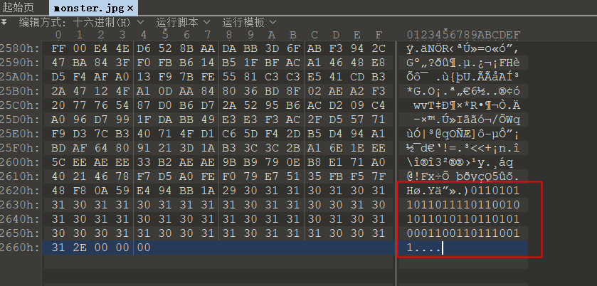 在这里插入图片描述打开图片发现提示文件格式错误,010打开,发现文件末尾为FF D9,文件开头应为FF D8,修改文件头,发现flag