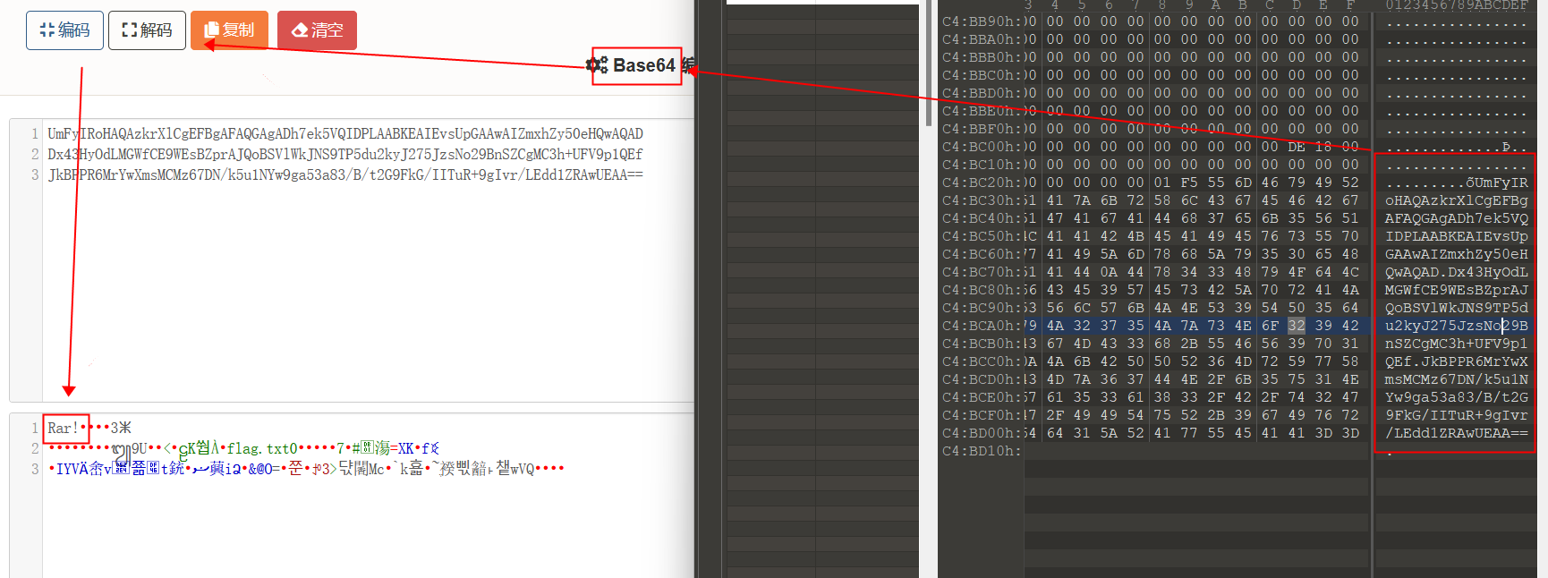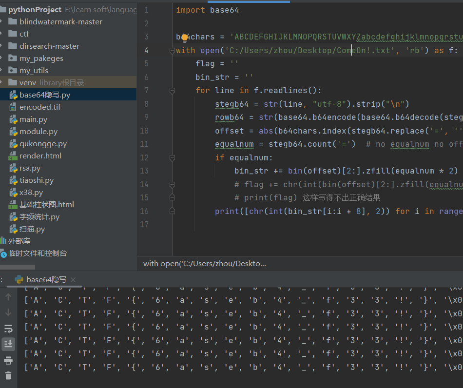 解压然后在txt文件看到编码,结合base64隐写脚本