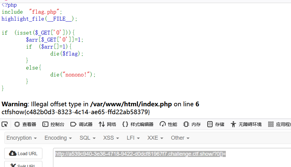 http://a539c940-3e36-4718-9422-d0dcf81967f7.challenge.ctf.show/?0[]=