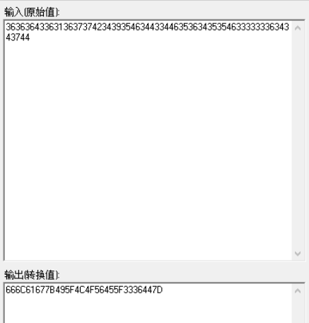 转换一下16进制得到3636364336313637374234393546344334463536343535463333333634343744