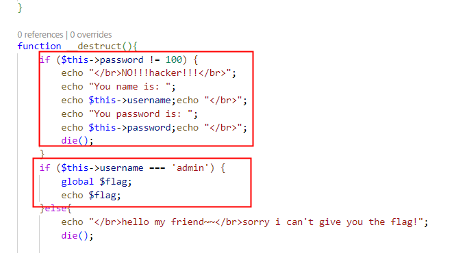 class.php中发现,满足username=admin,password=100就满足条件打印flag