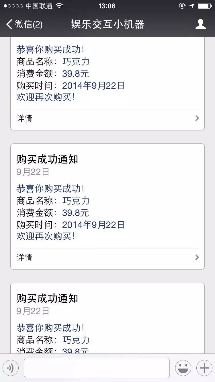 模板消息仅用于公众号向用户发送重要的服务通知,只能用于符合其要求的服务场景中,如信用卡刷卡通知,商品购买成功通知等。不支持广告等营销类消息以及其它所有可能对用户造成骚扰的消息。