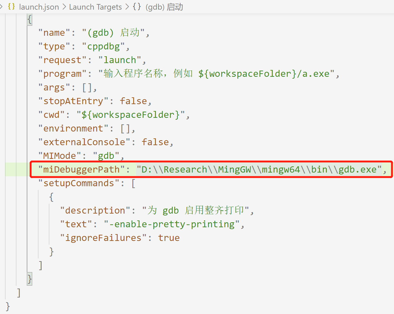 - launch.json:修改miDebuggerPath为自己的路径