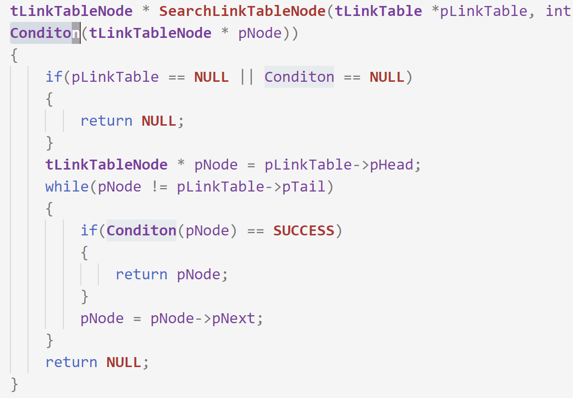 callback接口方式非常像谍战剧里派遣卧底,这里SearchLinkTableNode函数派遣了一个卧底Condition并指定了卧底负责收集的情报范围(参数化上下文),一旦发现目标情报卧底就被激活return pNode。