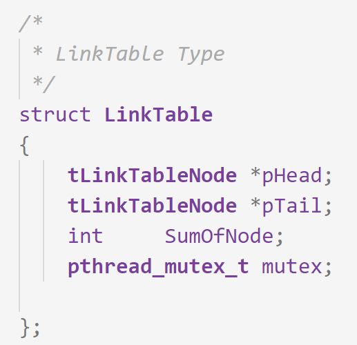 Linktable链表的数据结构中包含pthread_mutex_t mutex用于临界区的互斥,在创建Linktable链表时使用了pthread_mutex_init来初始化mutex,清空链表之后彻底删除链表之前使用pthread_mutex_destroy销毁了mute。显然对链表的查询没有进行临界区互斥方面的处理。从整个软件模块看也就是写操作都是互斥的,而读写可以并行进行。