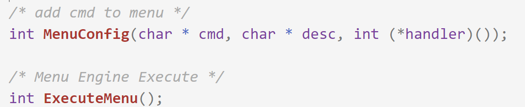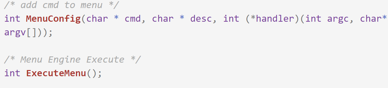 参照main函数的写法,我们可以把menu子系统的接口升级如下: