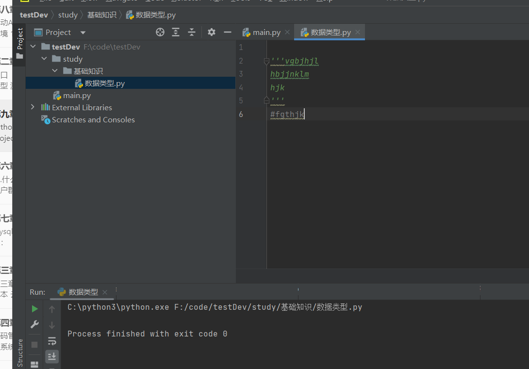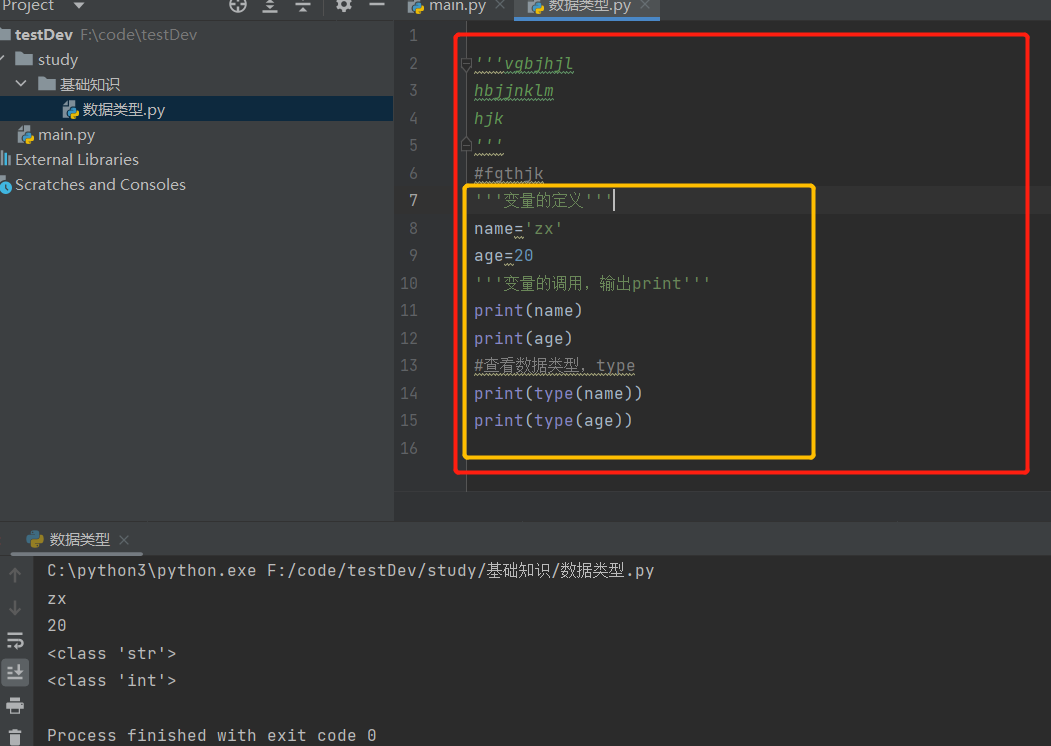 注释:1.多行注释’‘’ 规划‘’‘ 2.单行注释# 注释之后运行不受影响
