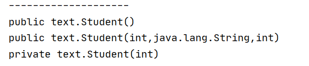 //加载类,获得类的Class对象 Class c = Class.forName("text.Student"); //通过Class对象获得类的信息 //1.获得所有可见的构造方法 Constructor [] cons = c.getConstructors(); for (Constructor con : cons){ System.out.println(con); }