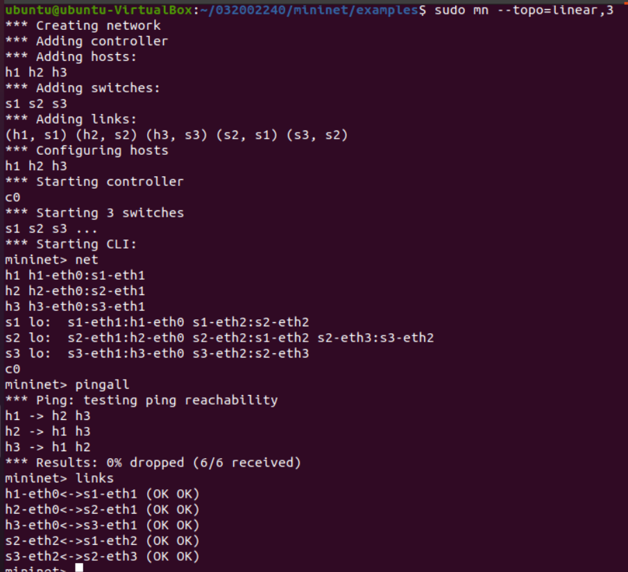 3.在2 b)的基础上,在Mininet交互界面上新增1台主机并且连接到交换机上,再测试新拓扑的连通性。