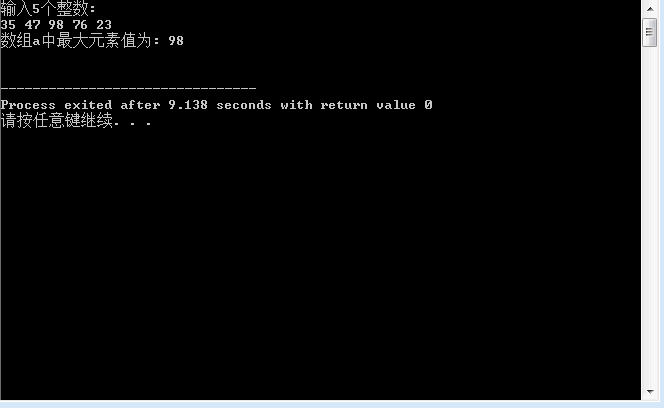printf("数组a中最大元素值为: %d\n\n", max);