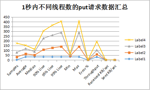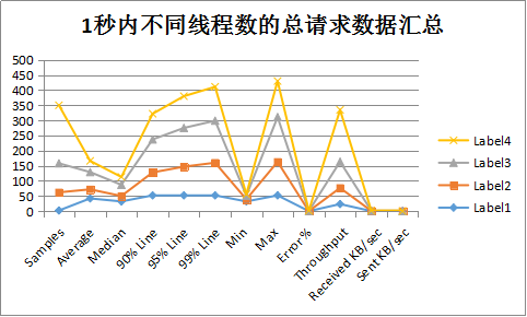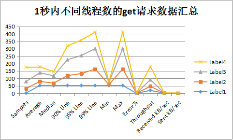 注:Label1代表1秒1线程访问额;Label2代表1秒30线程访问额;Label3代表1秒50线程访问额;Label4代表1秒100线程访问额。