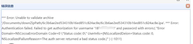 4、上传ipa文件时,报错*** Error:Authentication failed. Failed to get authorization for username 18)'and password with errors: