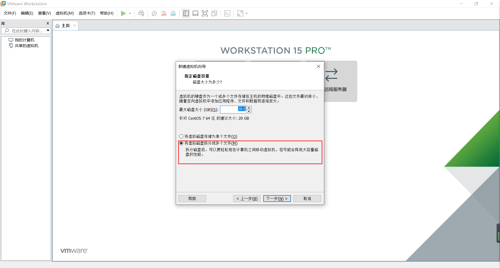 5、选择虚拟机磁盘的存储方式
