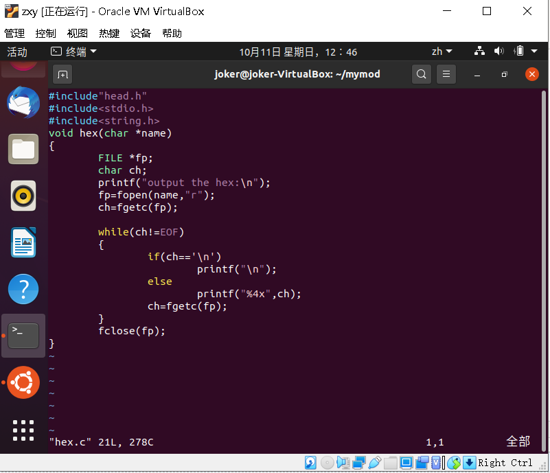 1. 复习c文件处理内容 2. 编写myod.c 用myod XXX实现Linux下od -tx -tc XXX的功能 3. main与其他分开,制作静态库和动态库 4. 编写Makefile 5. 提交测试代码和运行结果截图, 提交调试过程截图,要全屏,包含自己的学号信息