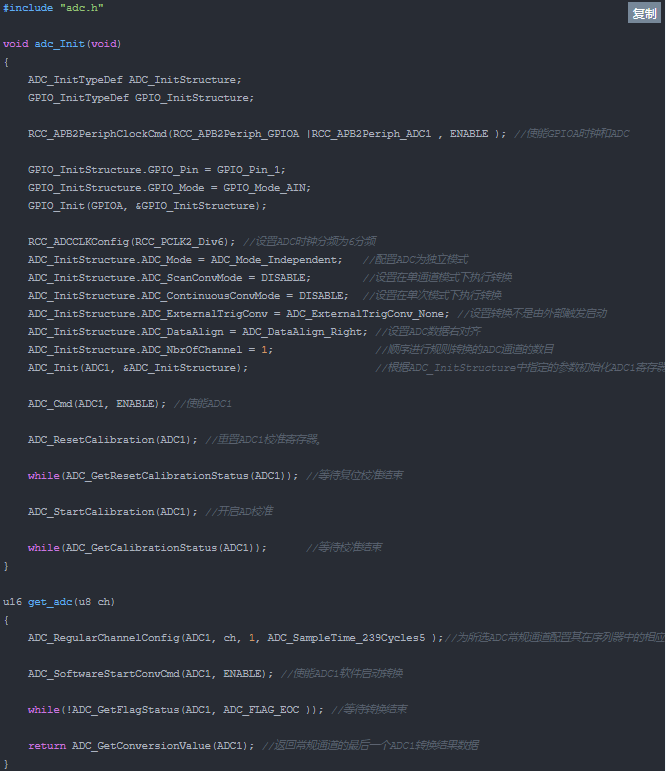 输 入:ADC_InitStruct:指向包含指定ADC外围设备的配置信息的ADC_InitTypeDef结构的指针。