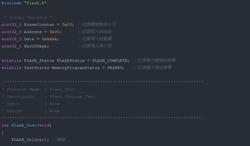 main.c函数主要进行函数初始化以及根据flash.c文件两个函数返回值输出相应信息。