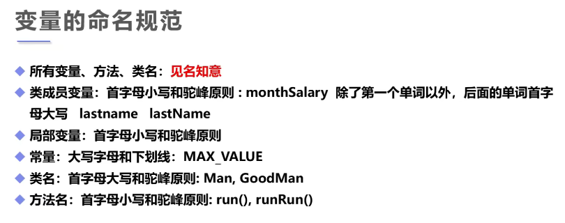 /*注意点:在实际开发的过程中要注意变量命名规范*/