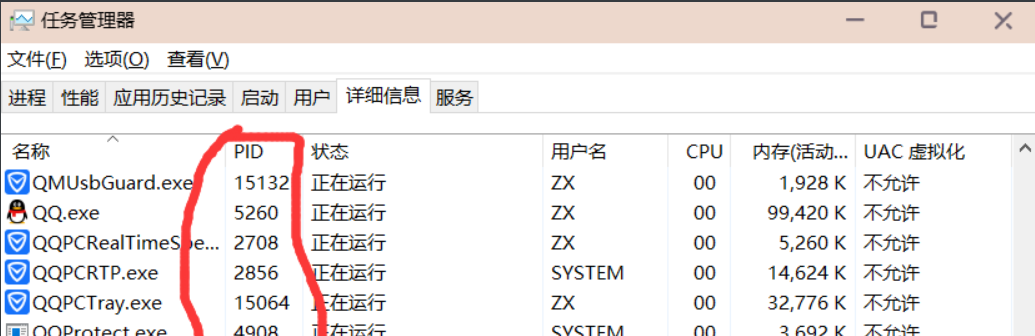 打开电脑任务管理器就可以查看某个运行应用的端口号(PID)