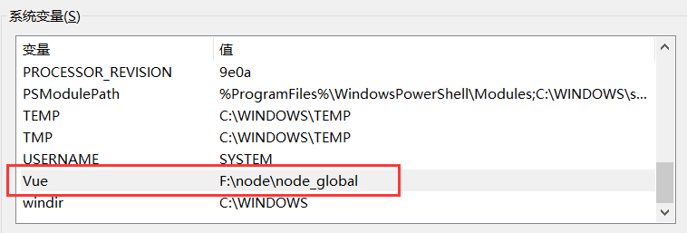 3.就在安装好的node.js的目录下面,找到vue.cmd这个文件的绝对路径,然后把这个绝对路径添加至Path,然后再添加一个环境变量Vue,变量值也是绝对路径,这样子问题就解决了,没解决你找我==。==