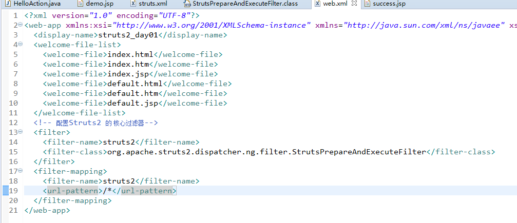 3.在web.xml中配置一个前端控制器(核心过滤器),filter-class来自所导入包struts2-core-2.3.24.jar下的一个类