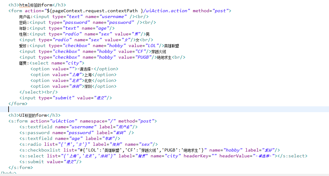 使用ui标签编写的表单,拥有一些简单的格式(其实就是一个表格),还拥有数据回显功能(主要用处),当后台数据类型转换出错或数据校验出错,重新返回该表单页面时会保留你输入的所有数据,而不是像html表单那样全部清空