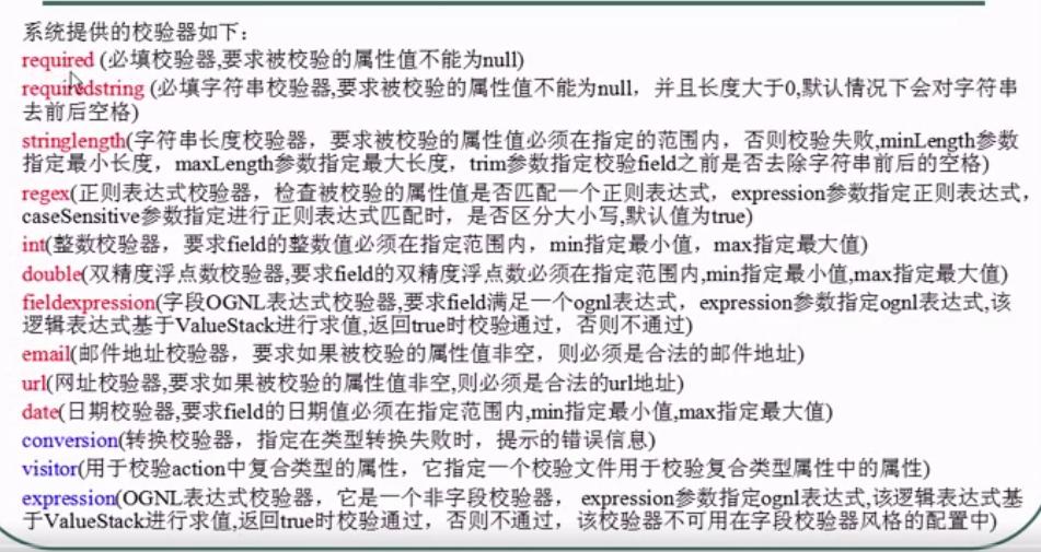 3.配置validatos,其中校验规则在xwork-core-2.3.24.jar包下的/com/opensymphony/xwork2/validator/validators/default.xml中,规则required不校验空格,requiredstring要校验空格。