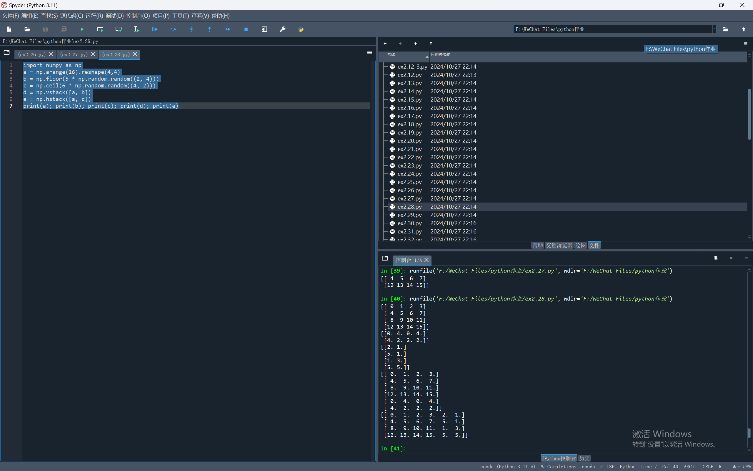 import numpy as np a = np.arange(16).reshape(4,4) b = np.floor(5 * np.random.random((2, 4))) c = np.ceil(6 * np.random.random((4, 2))) d = np.vstack([a, b]) e = np.hstack([a, c]) print(a); print(b); print(c); print(d); print(e)
