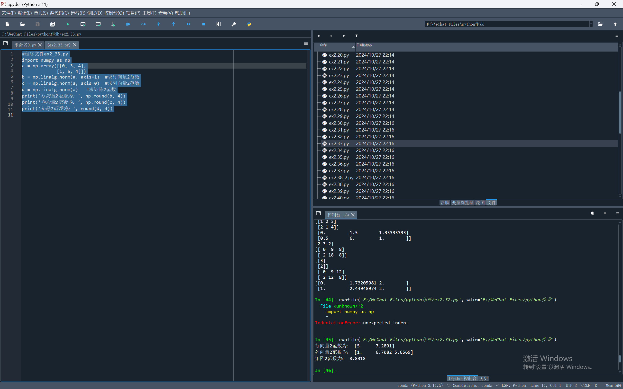 c = np.linalg.norm(a, axis=0) #求列向量2范数