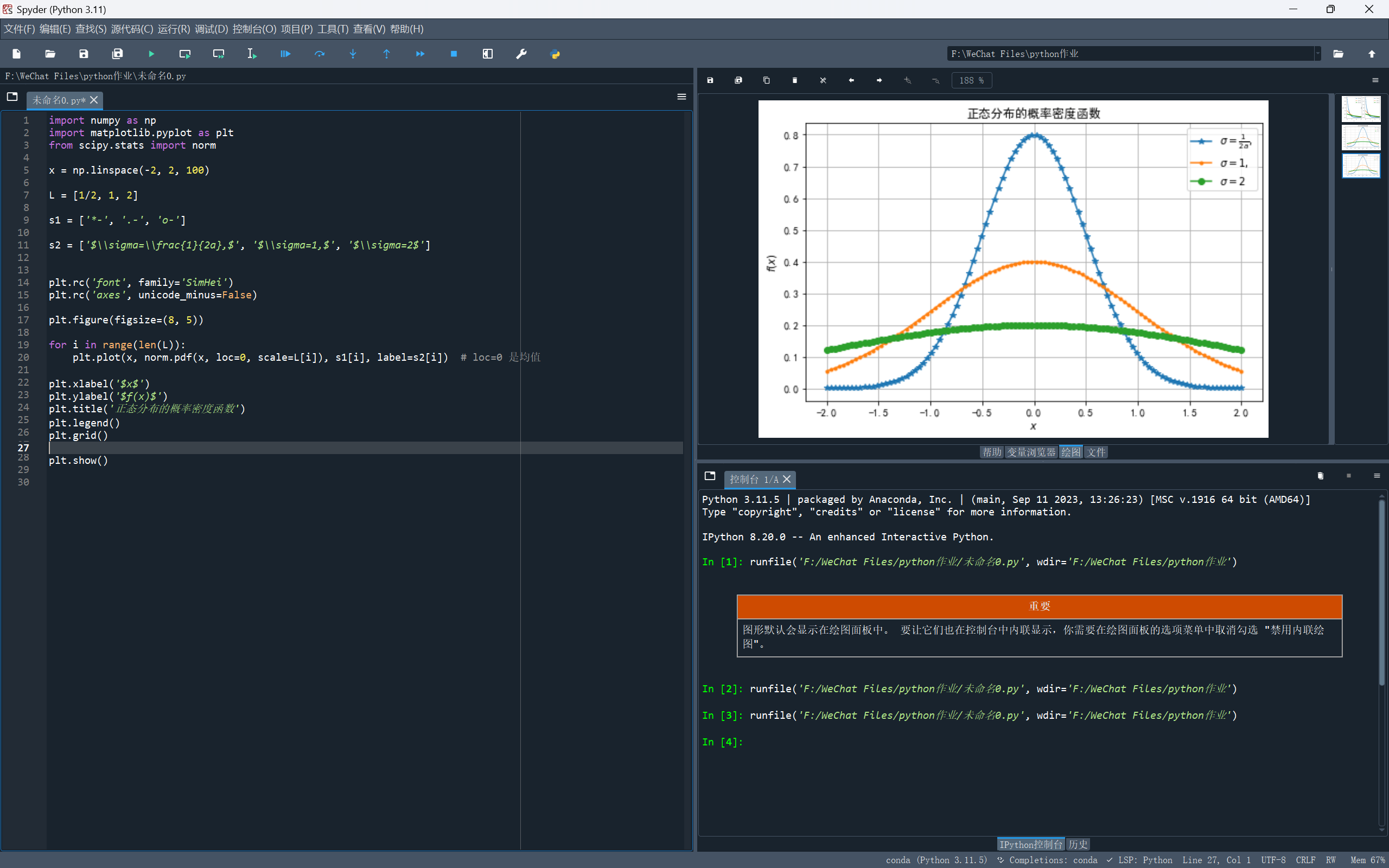 plt.plot(x, norm.pdf(x, loc=0, scale=L[i]), s1[i], label=s2[i]) # loc=0 是均值