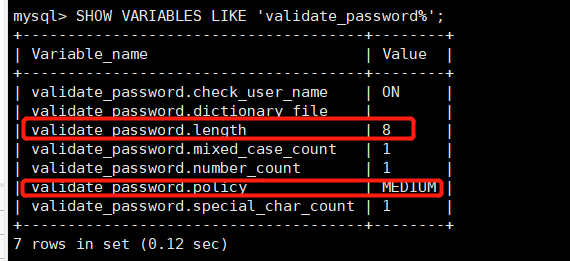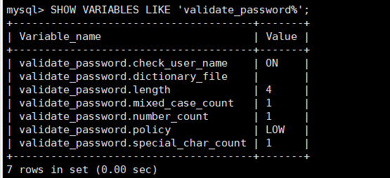 SHOW VARIABLES LIKE 'validate_password%';