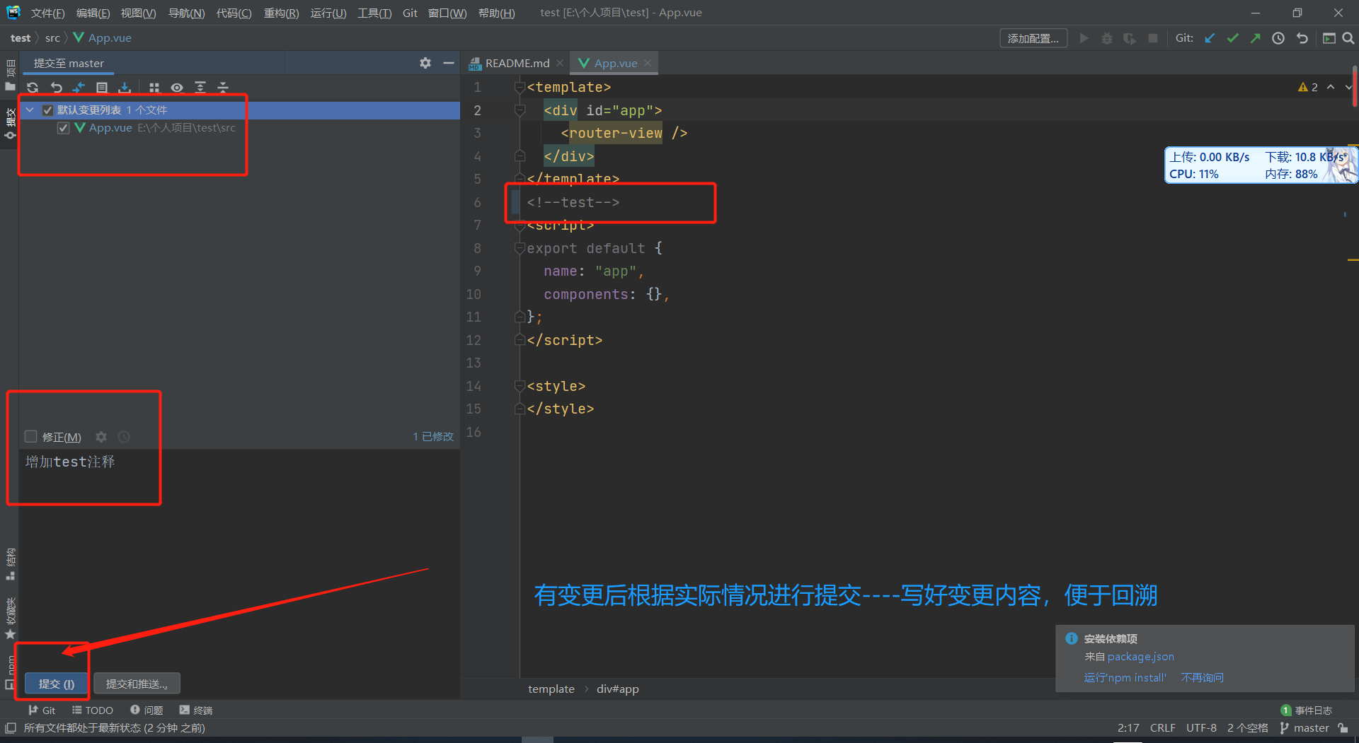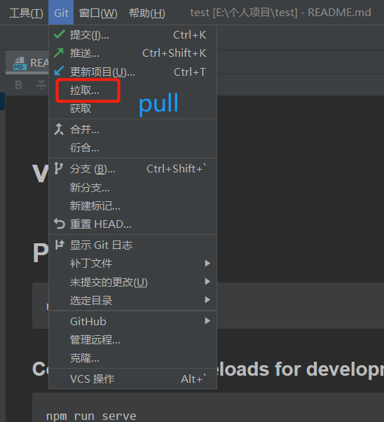 WebStorm前端项目-首次pull(拉取)项目commit(提交)、push(推送)代码
