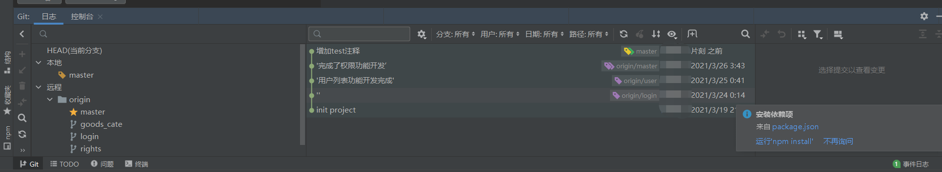 上git看看分支变更记录