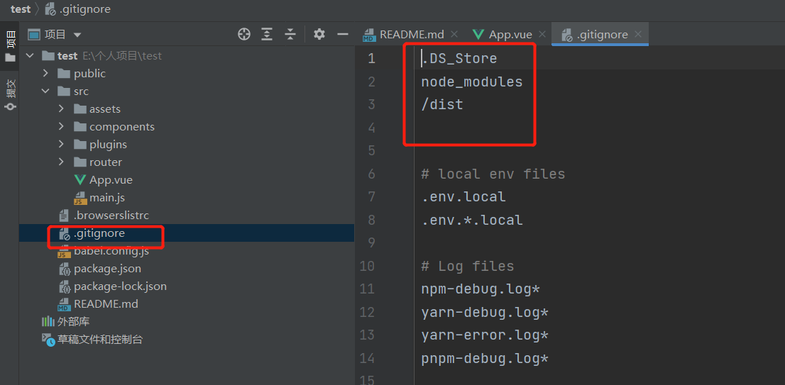 git配置文件中我们可以看到提交代码时并不会提交node_moudles文件,否则整个项目特别臃肿,默认提交会剔除该目录