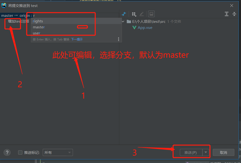 选中提交的变更,点击推送push
