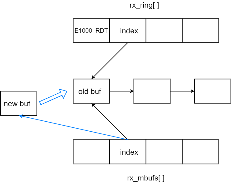 将旧mbuf发送,分配新的mbuf顶替,更新rx_ring[index]内容和rx_mbufs[index]记录的指针